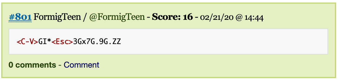 이 중 한 문제를 보면 (www.vimgolf.com/challenges/5e4dfcccaa2db400090b66c3)